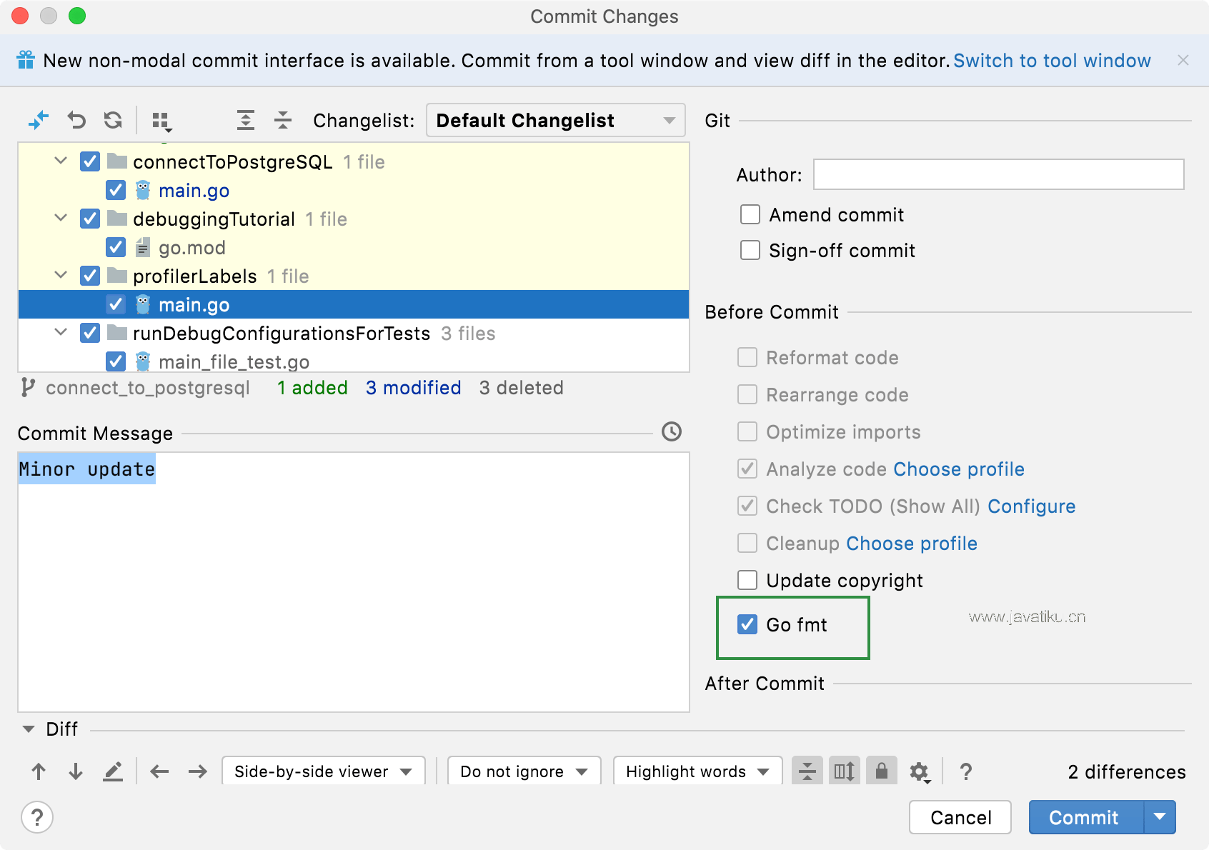 - Before Сommit 部分:在提交更改之前运行 gofmt 工具。
