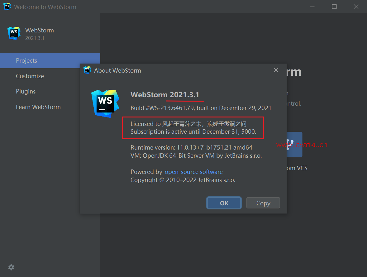 最新 2021.3.1 版本 WebStorm 永久破解教程,WebStorm 破解补丁 ja-netfilter 激活 5000年