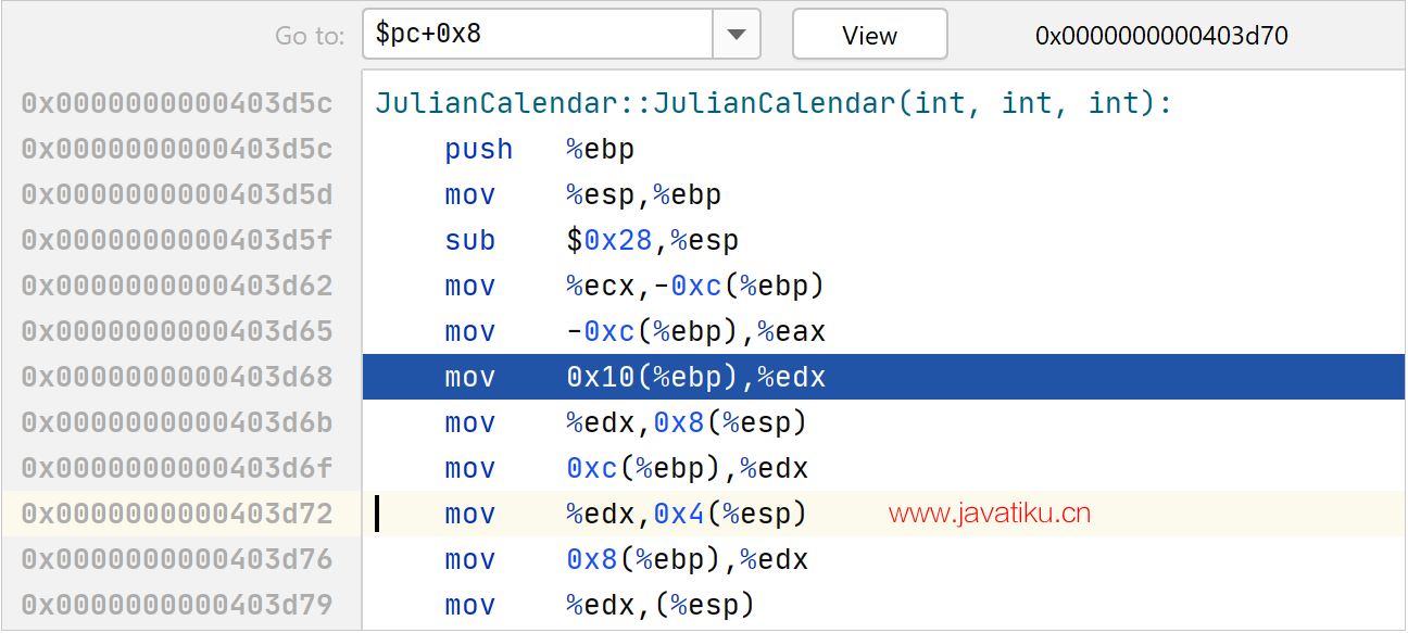 在反汇编和原始源代码中进行步进的行为不同:尽管调试器总是逐行步进,但源代码中的一行通常包含多条指令,而反汇编中的一行始终对应一条指令。