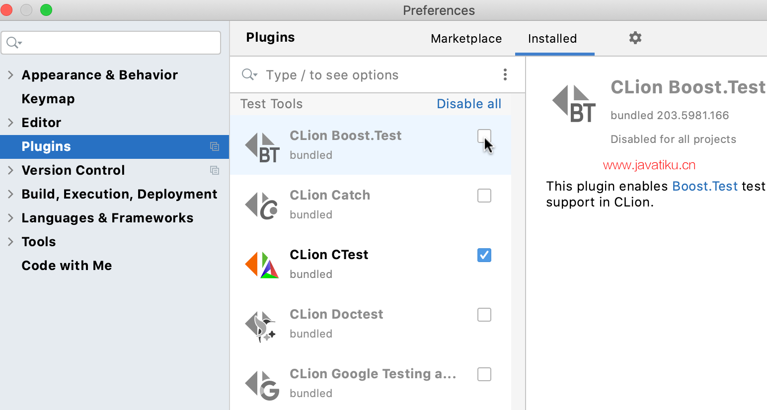 例如,如果您正在使用特定的测试框架,请考虑禁用CLion支持的其他测试框架的插件。