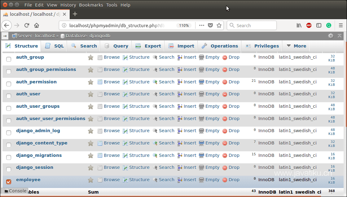 输入localhost:8000/show访问该应用程序,它将显示所有可用的员工记录。