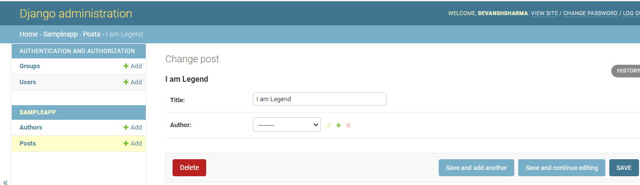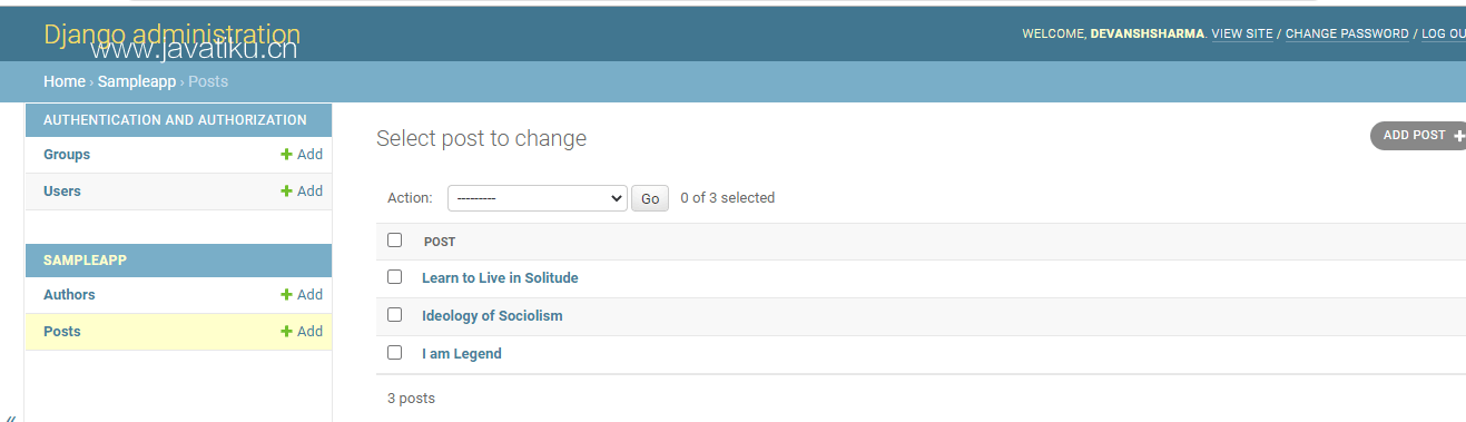 admin.site.register(Author) 创建帖子和作者后,我们的数据库中有以下数据。