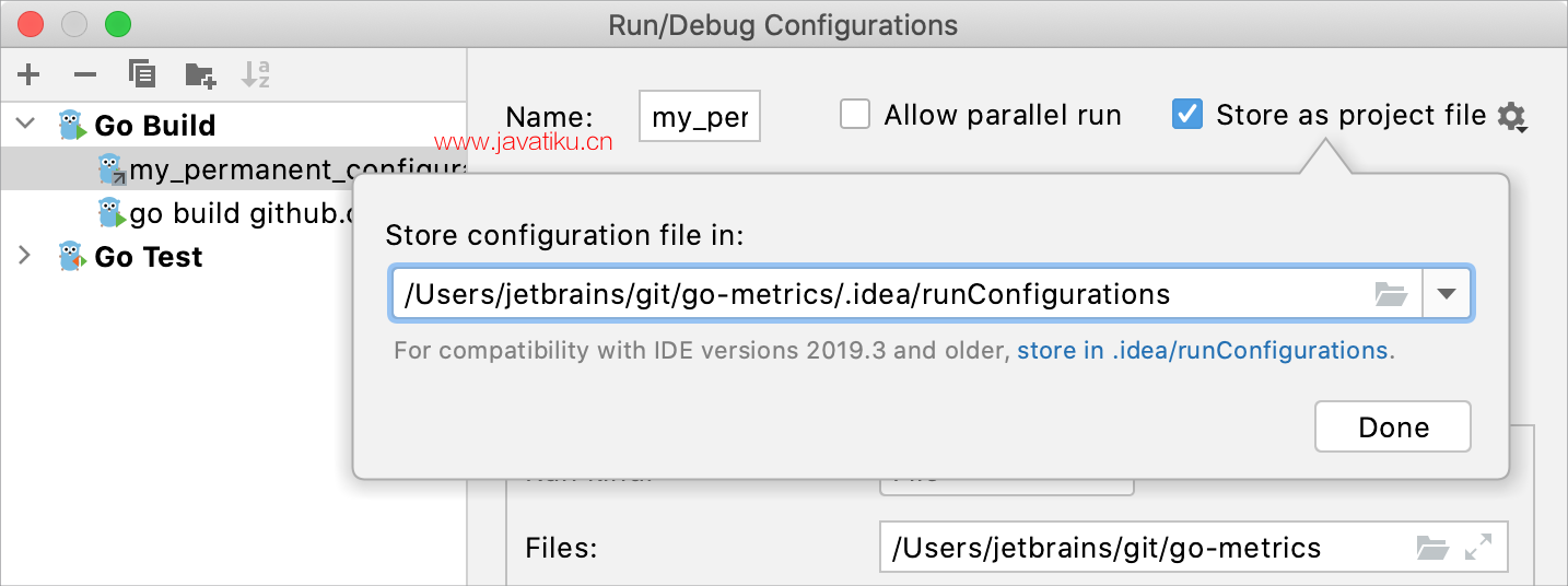 GoLand 提供以下方法来创建永久运行/调试配置: