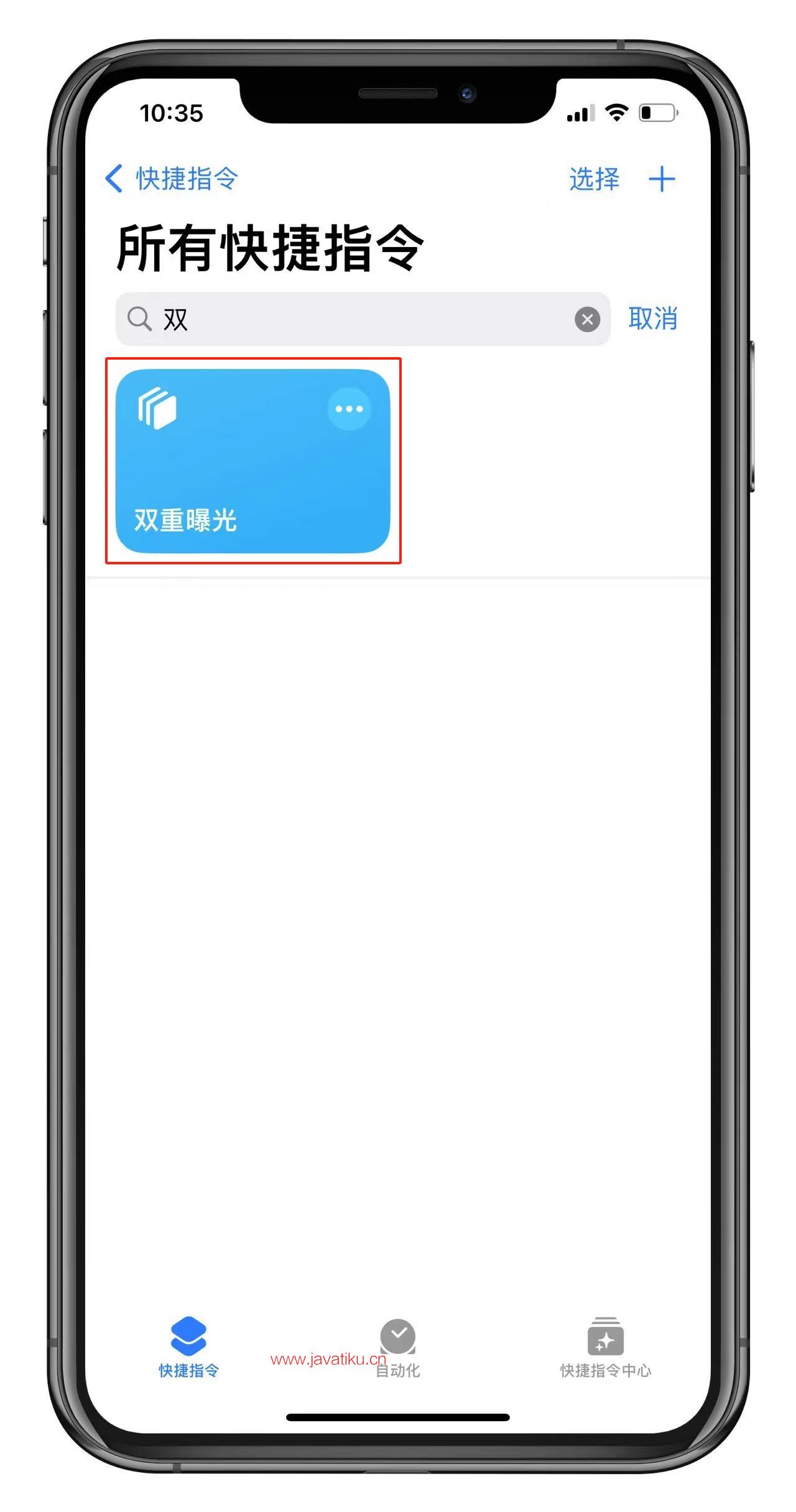 - 运行快捷指令:在弹出来的菜单中找到双重曝光快捷指令并点击运行。