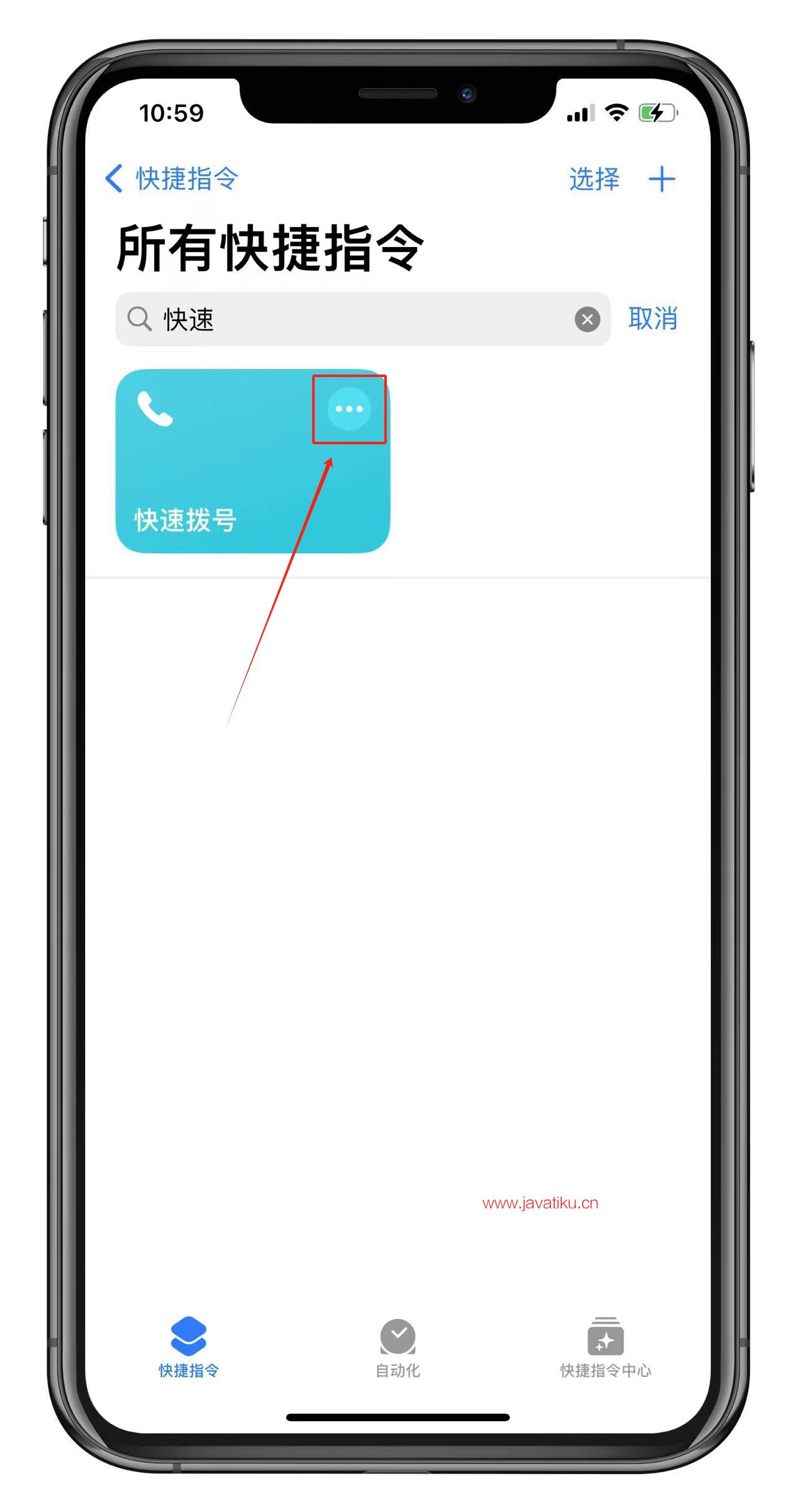 - 编辑快捷指令:打开快捷指令,找到"快速拨号"快捷指令,点击右上角的三个点图标。