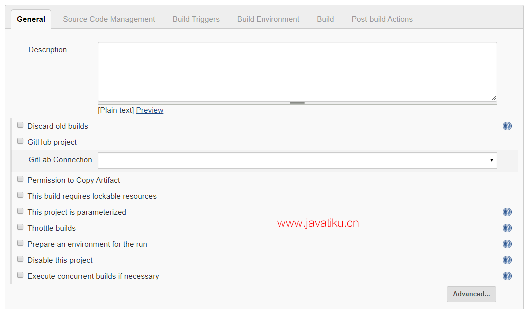 General 是构建任务的一些基本配置。名称,描述之类的。