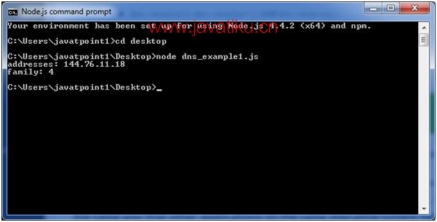 dns.lookup('www.javatiku.com', (err, addresses, family) => {