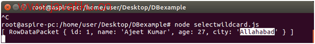 node selectwildcard.js它将检索以字母A开头的城市记录。