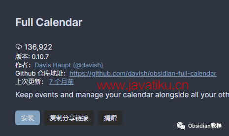 安装插件: 找到 Full Calendar 插件后,点击「安装」按钮。