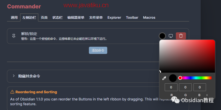 Commander插件主要功能是允许用户对Obsidian的用户界面进行定制化的命令添加、编辑和管理。