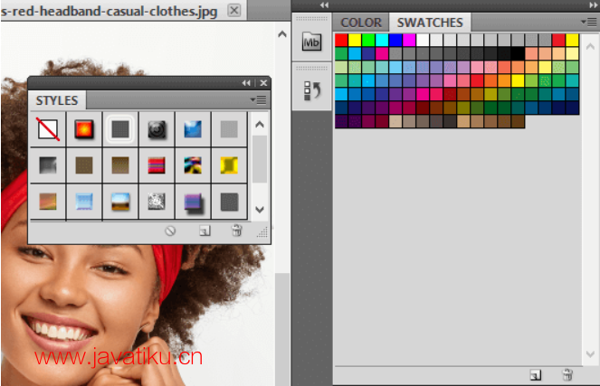从上图中,我们将样式面板放置在图像画布上。同样,我们可以将它放在任何其他位置。