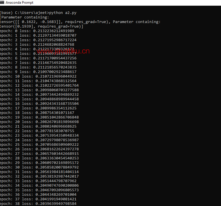 现在,我们将为指定的周期训练我们的模型,就像我们在线性模型中所做的那样。因此,代码将与线性模型类似。