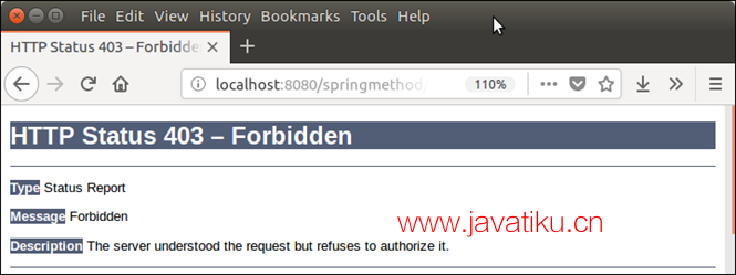 登录后,单击update record,可以看到服务器拒绝访问,因为用户角色是USER。