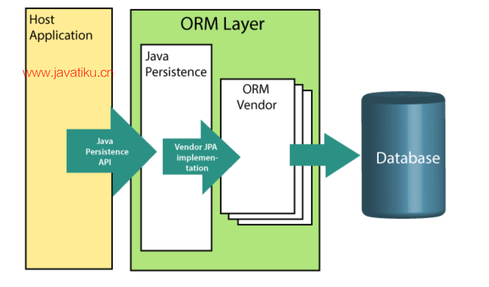 ORM层存在于应用程序和数据库之间。它将Java类和对象转换为可以存储和管理在关系型数据库中的形式。默认情况下,持久化的名称成为表的名称,字段成为列。一旦应用程序设置好,每个表行对应一个对象。