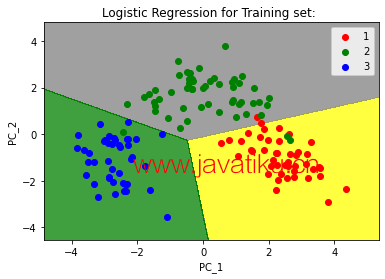 explained_variance = PCa.explained_variance_ratio_ 步骤6: 现在,我们将对训练集进行逻辑回归拟合。