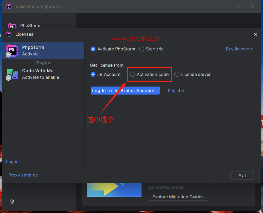 例如,如果您安装了pycharm和Pycharm这两款软件,运行激活脚本一次即可。而且,以后如果您再安装其他Idea软件,无需再次运行激活脚本,只需按照后续步骤输入激活码即可!步骤 5:PhpStorm激活 启动PhpStorm,点击左下角的设置图标,然后选择“Manage Licenses...”。在弹出窗口中,选择“Activation code”。