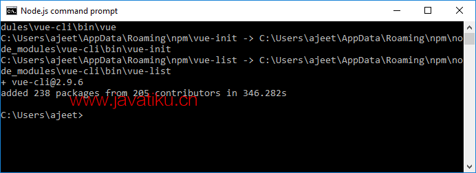 安装Vue.js CLI可能需要几分钟的时间。完成后,它会显示Vue.js的CLI版本。